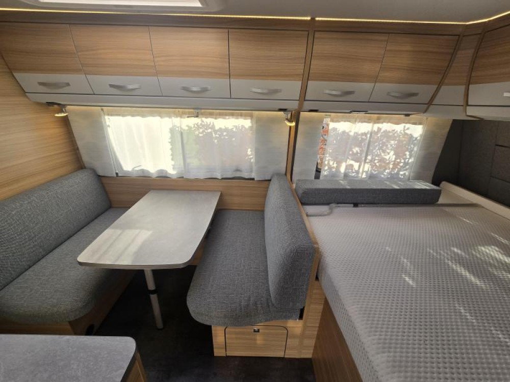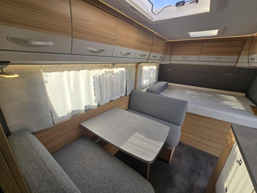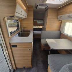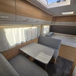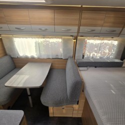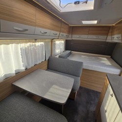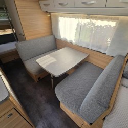 De nieuwe airconditioning en het grote dakluik zorgen ook als het buiten heet is voor een koel interieur. Voor een goede verdeling van de verwarmde lucht is de caravan voorzien van een circulatiesysteem.
