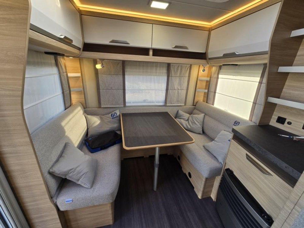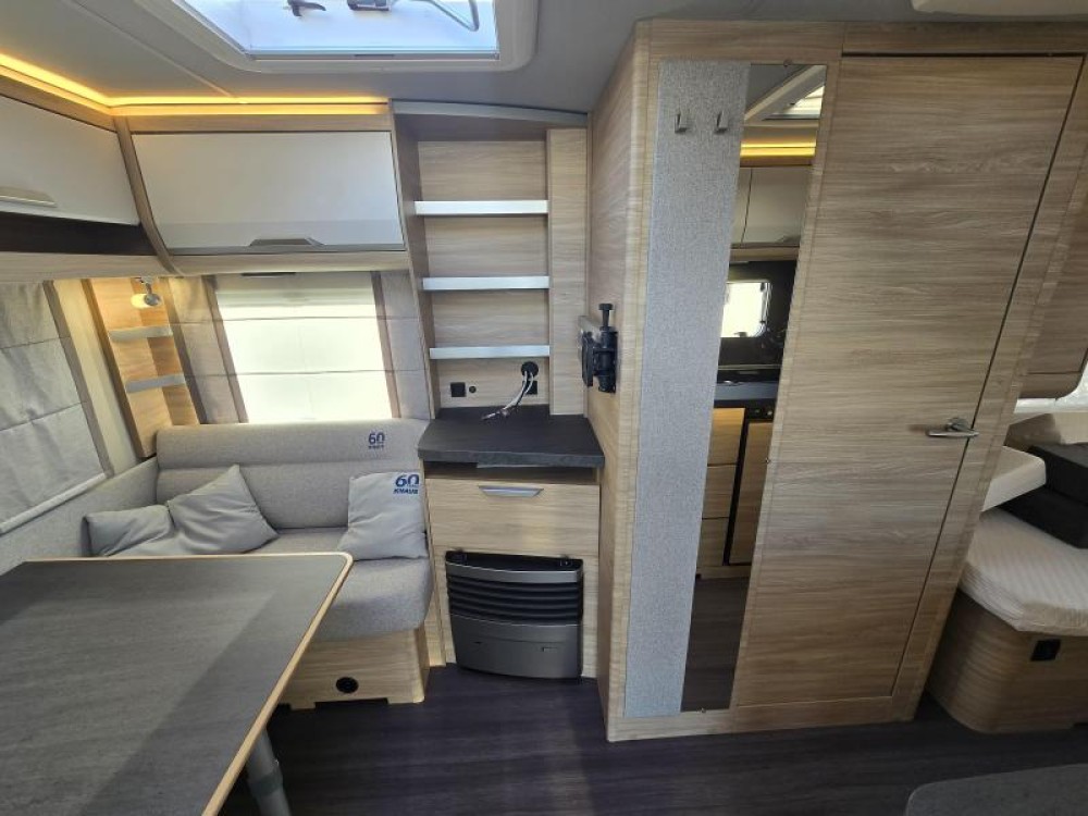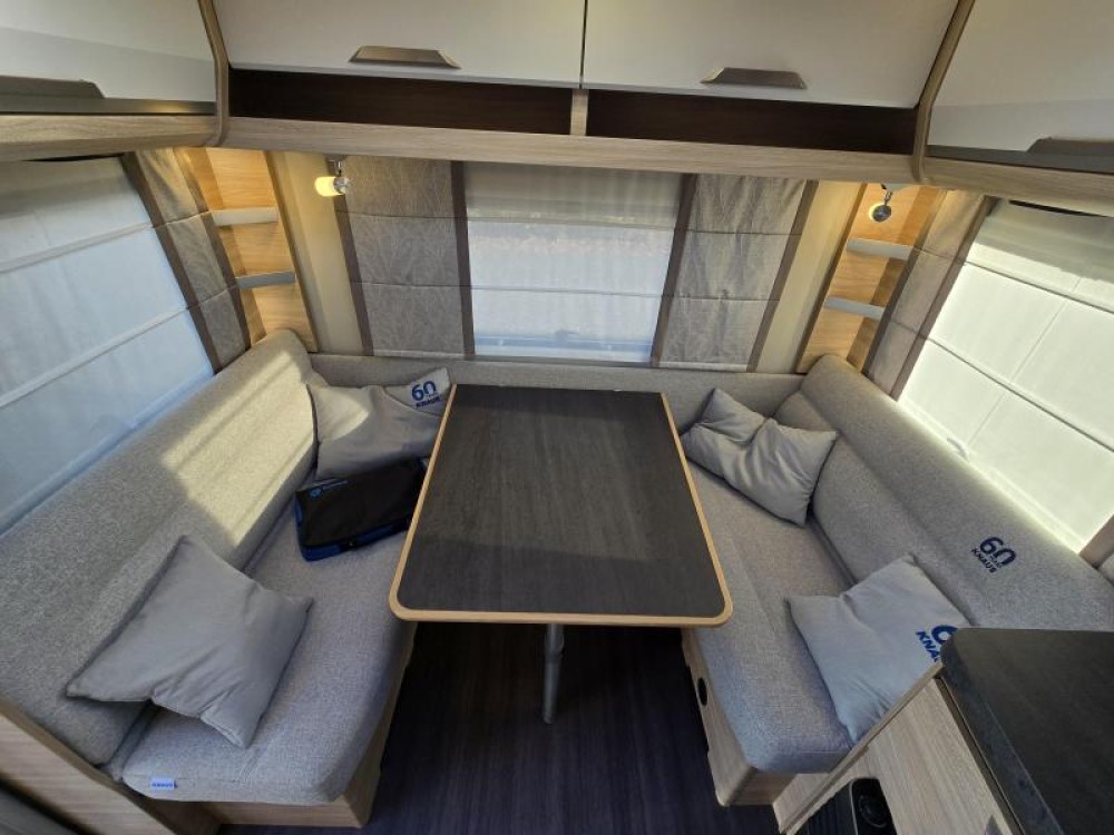 U heeft in deze comfortabel ingedeelde Knaus Sudwind 60 Years, die is gebouwd in 2021, de beschikking over genoeg slaap- en zitgelegenheid. Doordat er een zogenaamd GFK-materiaal is toegepast, is het dak van deze Knaus caravan hagelbestendig. Uw fietsen kunt u makkelijk meenemen op het fietsenrek dat op deze caravan is gemonteerd. Het meenemen van al uw reisbagage in deze caravan, is geen enkel probleem. Het laadvermogen bedraagt namelijk 440 kilo. Doordat deze caravan is voorzien van een Truma mover kunt u deze eenvoudig op iedere gewenste plek zetten. Uw bagage kunt u ook van de buitenzijde snel bereiken via het serviceluik.