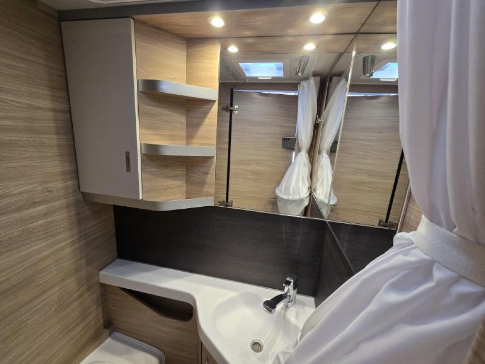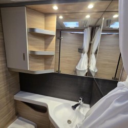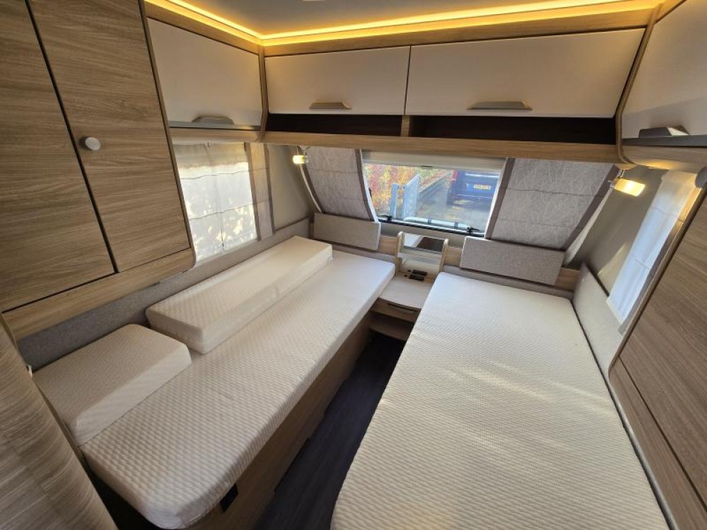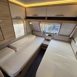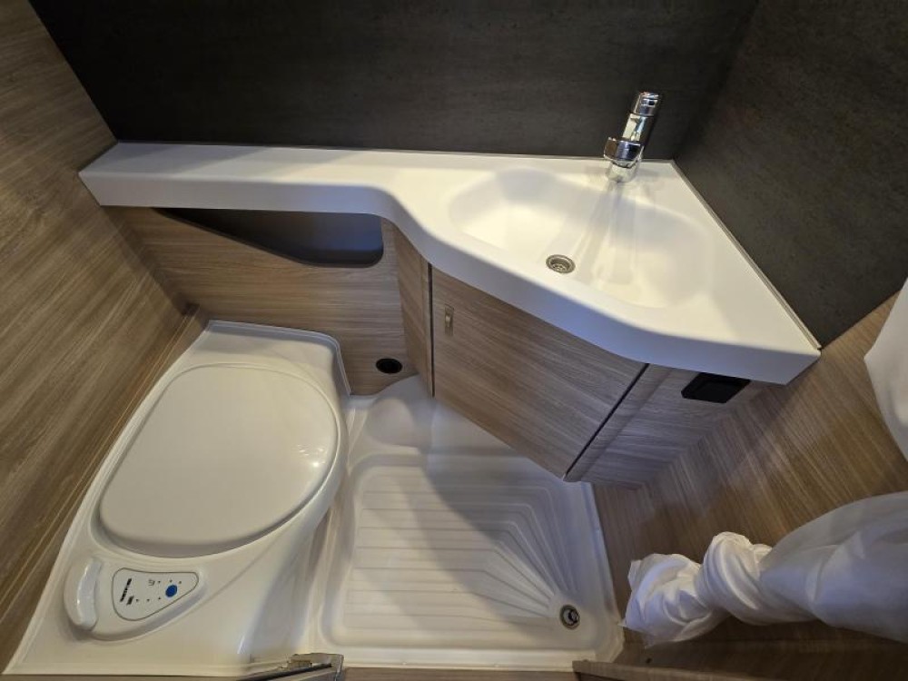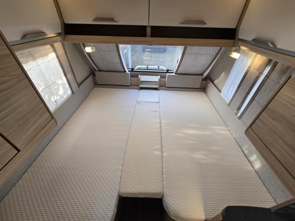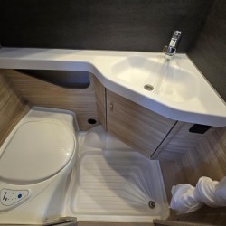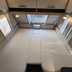 Slapen doet u op de 2 aparte bedden, die borg staan voor extra ruimte en een makkelijke instap. Dankzij de pocketveringsmatrassen en lattenbodems op de bedden kunt u genieten van een extra comfortabele ligging. De badkamer biedt gelegenheid om u aan de wastafel op te frissen en er is tevens een cassettetoilet. Ook is de caravan uitgerust met een douchegelegenheid, zodat u aan boord kunt douchen.
