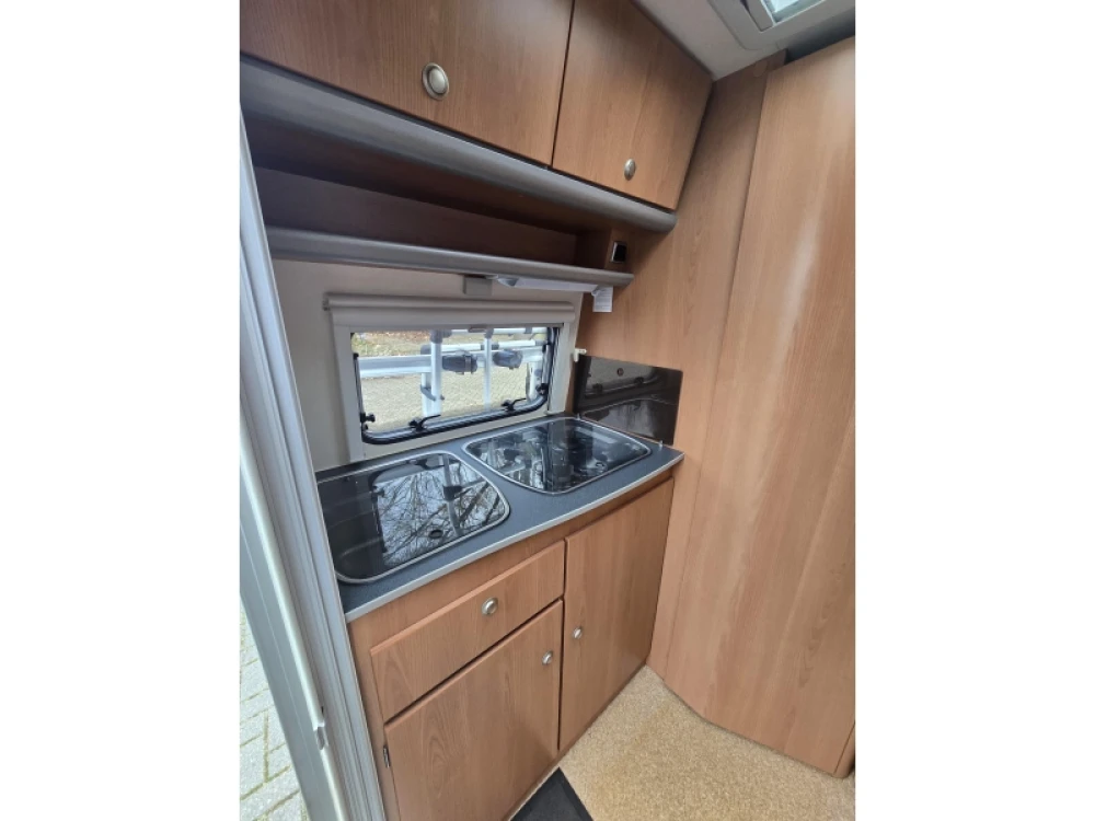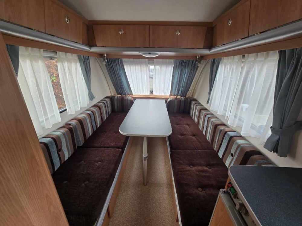 Het weggedrag van de caravan wordt verbeterd door de stabilisatorkoppeling. De caravan wordt geleverd met een originele Kip voortent.