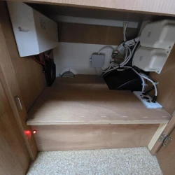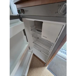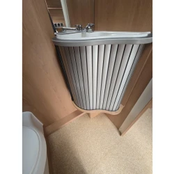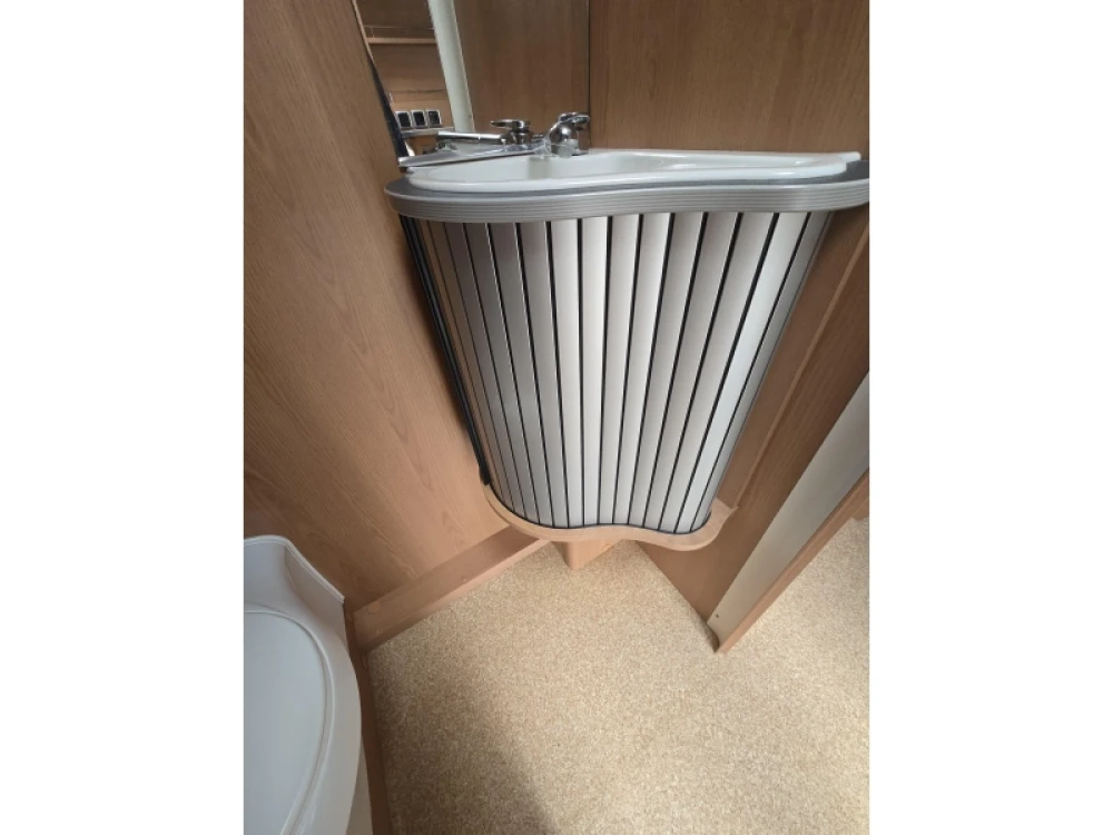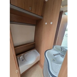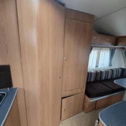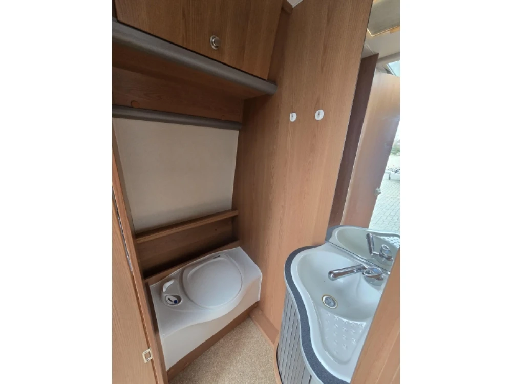 In de caravan vindt u onder meer een ruim tweepersoons bed dat in de lengte is geplaatst. In de badkamer kunt u zich lekker opfrissen bij de wastafel. Verder is er ook een cassettetoilet ingebouwd.