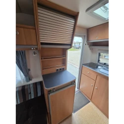 Deze Kip Kompakt van bouwjaar 2010, heeft een handige inrichting waardoor u kunt beschikken over slaapgelegenheid voor 2 personen. De caravan is tevens uitgerust met een handig fietsenrek aan de achterzijde, zodat u uw fietsen gemakkelijk kunt meenemen naar uw vakantiebestemming. Het laadvermogen bedraagt 220 kilo, zodat u al uw vakantiebagage makkelijk mee kunt nemen. Doordat deze caravan is voorzien van een mover kunt u deze eenvoudig op iedere gewenste plek zetten. Via het serviceluik kunt u ook van buitenaf heel makkelijk bij uw spullen komen.