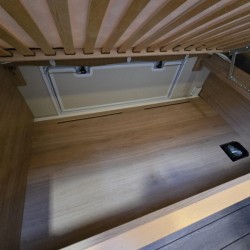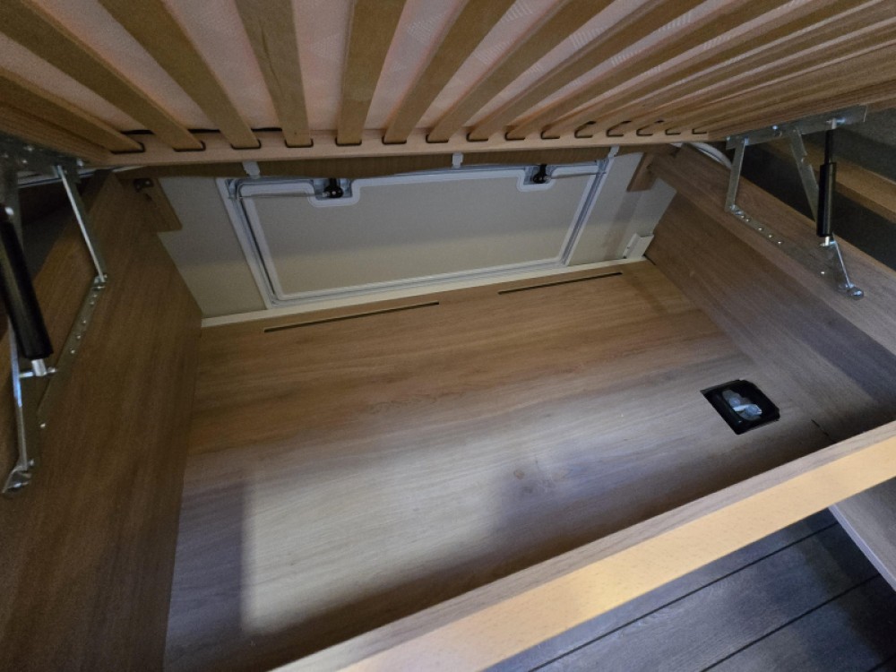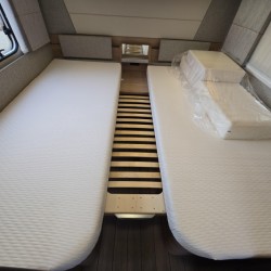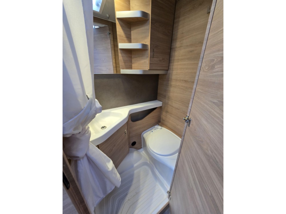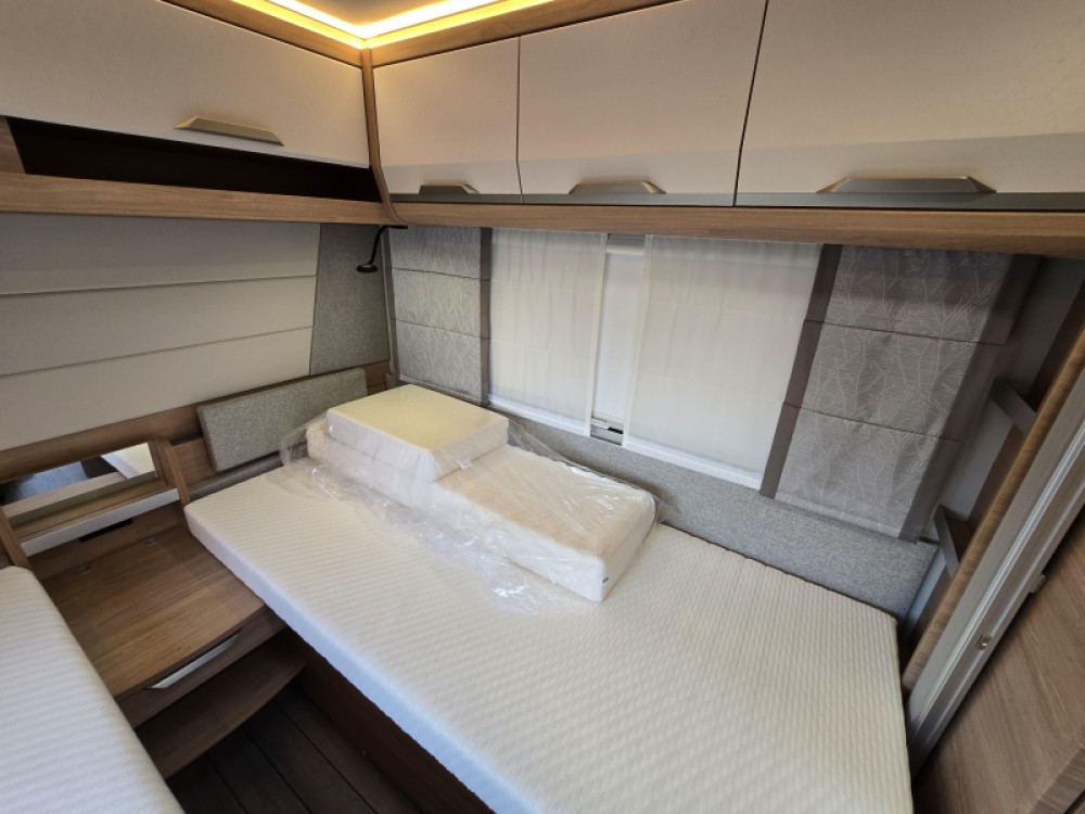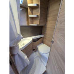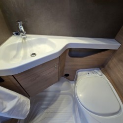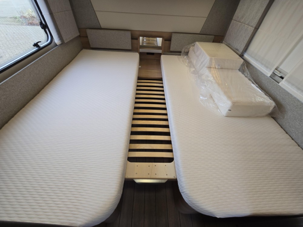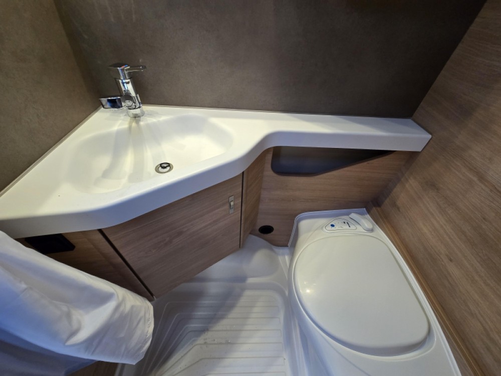In de caravan vindt u onder meer een ruim tweepersoons bed dat in de lengte is geplaatst. U kunt in deze caravan genieten van een weldadige nachtrust dankzij de lattenbodems en pocketveringsmatrassen op de bedden. De badkamer biedt gelegenheid om u aan de wastafel op te frissen en er is tevens een cassettetoilet. Ook is de caravan uitgerust met een douchegelegenheid, zodat u aan boord kunt douchen.