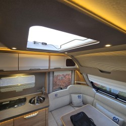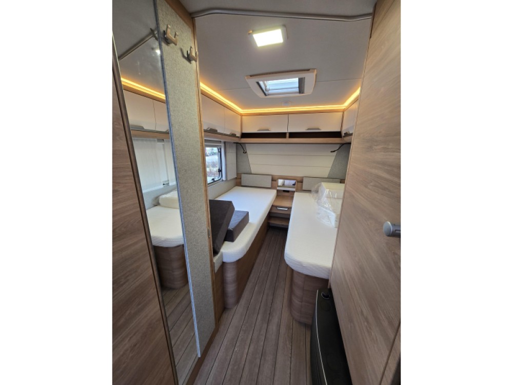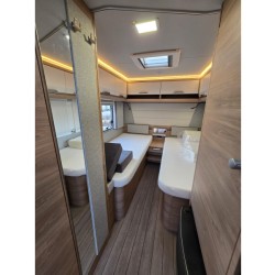 Het grote dakluik van de caravan zorgt voor extra veel lichtinval en een goede ventilatie. Voor een goede verdeling van de verwarmde lucht is de caravan voorzien van een circulatiesysteem.