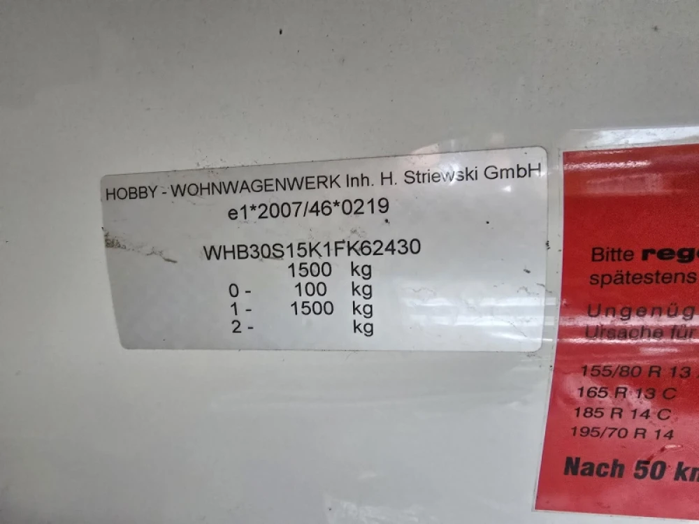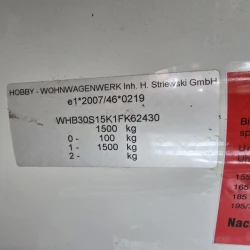 Deze prachtige en nette Hobby caravan is afkomstig van de 1e eigenaar, niet-rokers en geen huisdieren. Hij is perfect voor een vakantie met drie volwassenen of twee volwassenen en twee kleine kinderen. Hij is comfortabel en voorzien van vele extra's. De vorige eigenaar heeft de caravan in Nederland gekocht en vervolgens in Duitsland ingevoerd omdat ze net over de grens aldaar woonde. In Duitsland zijn er verplichte keuringen die we in Nederland niet kennen en de caravan heeft net weer een APK=HU (Hauptuntersuchung) tot juni 2027. De 1e registratie was in mei 2019. Er zijn in juli 2025 2 nieuwe banden onder gekomen en ook het reservewiel is vervangen.