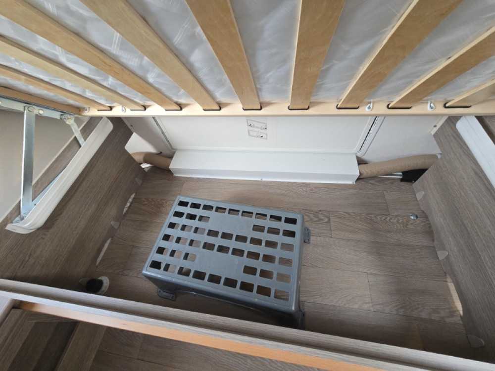 De aparte bedden waarmee de caravan is uitgerust bieden een ruime slaapplek voor 2 personen. Om het u aan niets te laten ontbreken, zijn de bedden voorzien van zowel lattenbodems als pocketveringsmatrassen. De badkamer biedt gelegenheid om u aan de wastafel op te frissen en er is tevens een cassettetoilet.