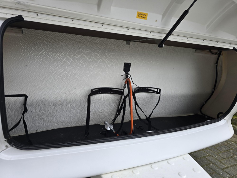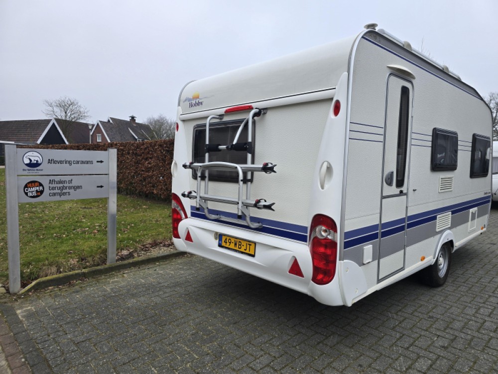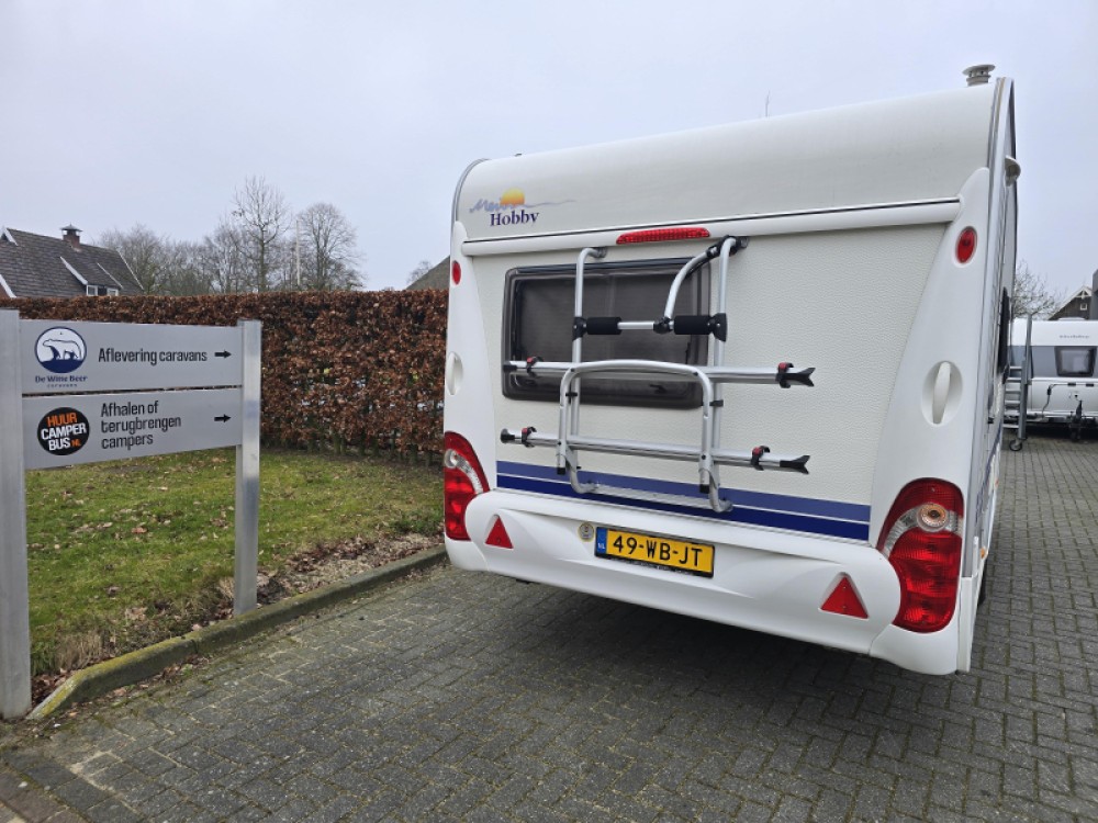 Deze Hobby De luxe biedt een praktische indeling, zodat u optimaal kunt genieten van uw kampeervakantie. Uw vakantiebagage is via het handige serviceluik uitstekend bereikbaar. De caravan is goed onderhouden (BOVAG rapport wordt meegeleverd) en is voorzien van goede banden uit eind '23. De caravan is verder voorzien van een fietsendrager voor 2 fietsen. Deze bevindt zich aan de achterzijde.
