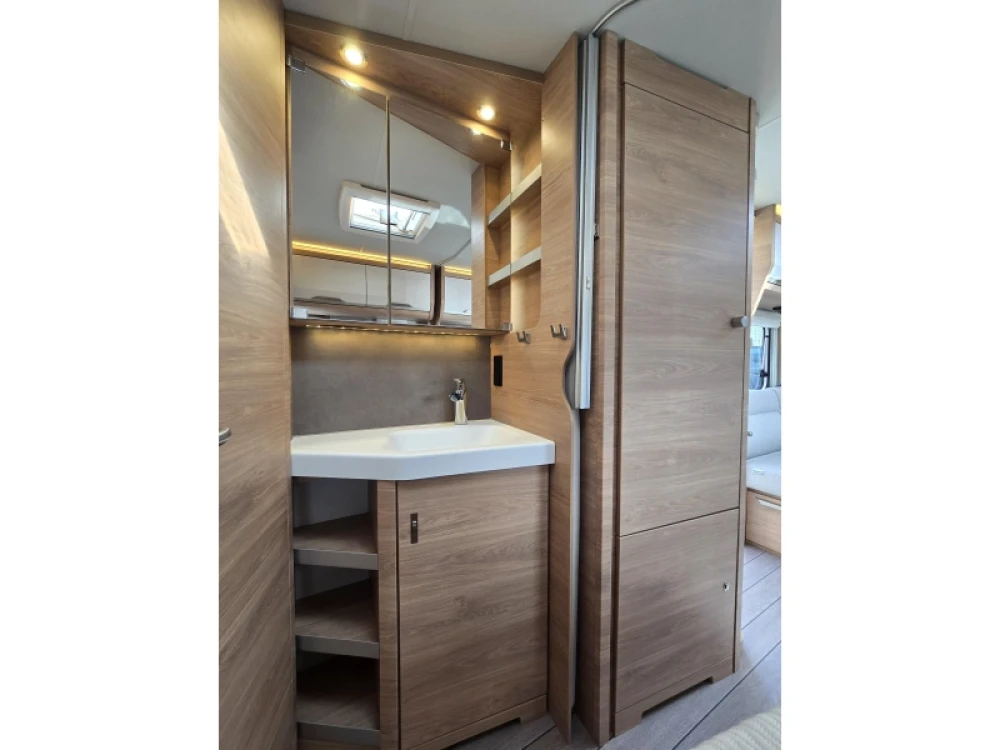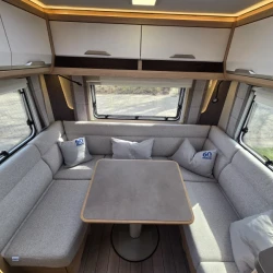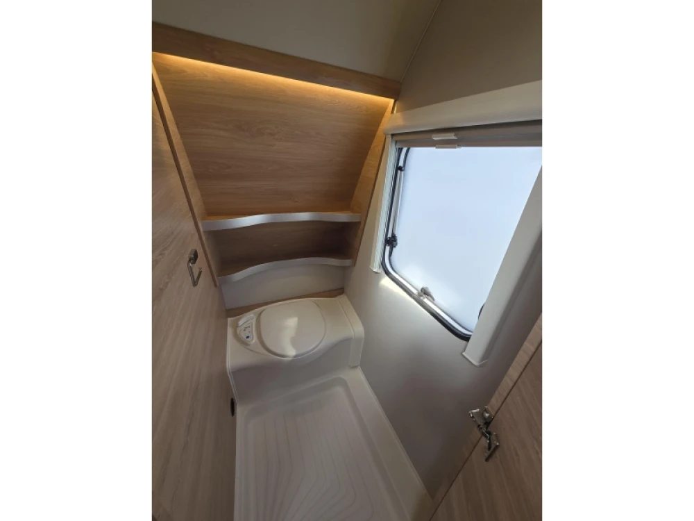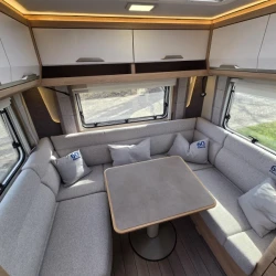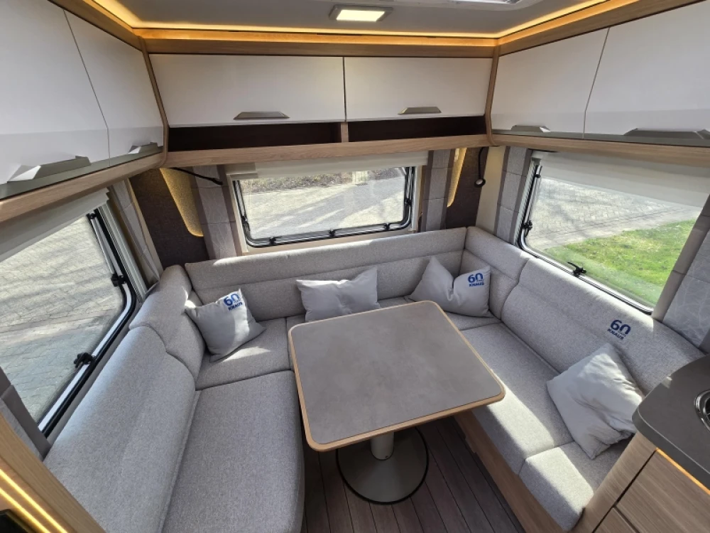 U zult in deze caravan, dankzij de ingebouwde hordeur, minder last van insecten hebben. Op de camping aangekomen kunt u de Thule cassetteluifel in een oogwenk uitdraaien. Omdat de caravan is uitgerust met een stabilisatorkoppeling, heeft deze een rustiger weggedrag. Op de camping aangekomen manoeuvreert u de caravan eenvoudig op zijn plaats met behulp van de Truma halfautomatische mover.