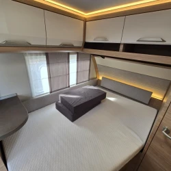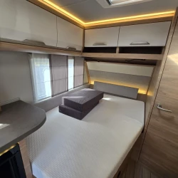In de caravan vindt u onder meer een ruim tweepersoons bed dat in de lengte is geplaatst. U kunt in deze caravan genieten van een weldadige nachtrust dankzij de lattenbodems en pocketveringsmatrassen op de bedden. De badkamer biedt gelegenheid om u aan de wastafel op te frissen en er is tevens een cassettetoilet.