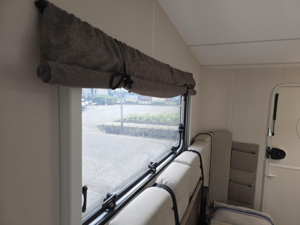 In de caravan vindt u onder meer een ruim tweepersoons bed dat in de lengte is geplaatst. In de badkamer, waar deze caravan over beschikt, vindt u een ingebouwd cassettetoilet en een wastafel.