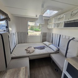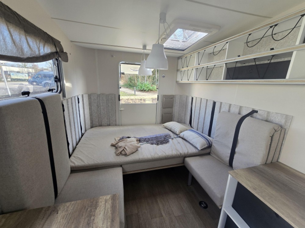 Deze Hobby Beachy heeft een doordachte inrichting die is voorzien van slaapgelegenheid voor 3 personen. De caravan is gebouwd in 2024. Door het riante laadvermogen van 450 kilo, kunt u al uw vakantiespullen makkelijk meenemen. Het gaat in de basis om een lichtgewicht caravan met een leeggewicht van slechts 750 kg. Eventueel kan het maximum gewicht op kenteken omlaag gebracht worden.