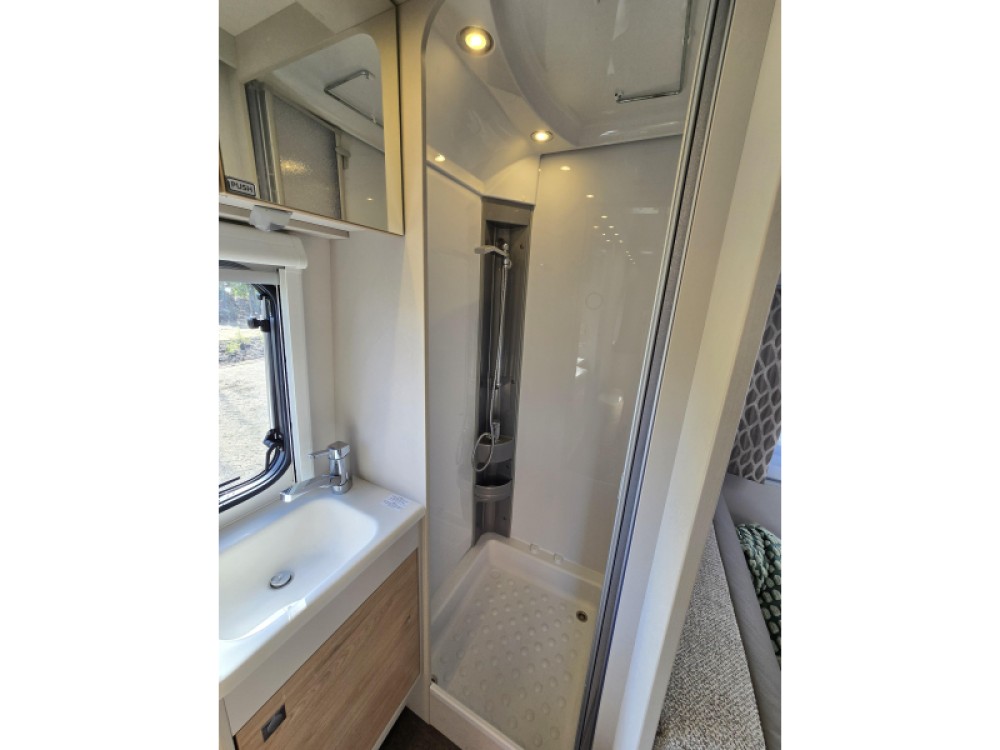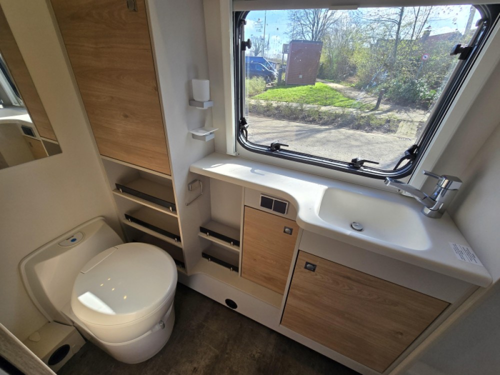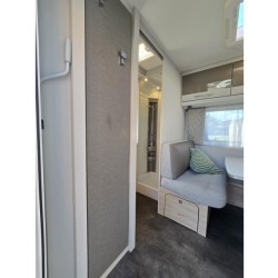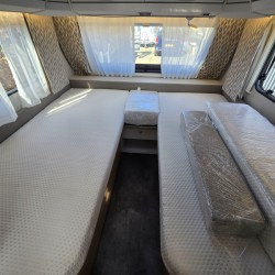 De twee aparte bedden waarover de caravan beschikt, bieden een gemakkelijke instap. Dankzij de pocketveringsmatrassen en lattenbodems op de bedden kunt u genieten van een extra comfortabele ligging. In de badkamer vindt u een wastafel om u op te frissen, alsmede een ingebouwd cassettetoilet. Ook is de caravan uitgerust met een douchegelegenheid, zodat u aan boord kunt douchen.