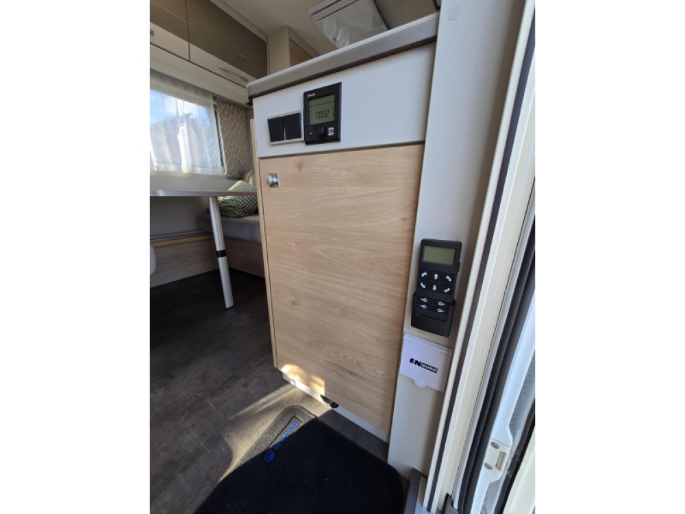 De caravan is uitgerust met een televisie en antenne. Door de hordeur, waarmee deze caravan is uitgerust, houdt u vliegen en andere insecten buiten de deur. U bent beschermd tegen zon en regen door de snel uit te draaien Thule cassetteluifel. De caravan is voorzien van een stabilisator. Hierdoor wordt het weggedrag aanzienlijk verbeterd.