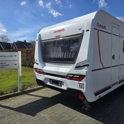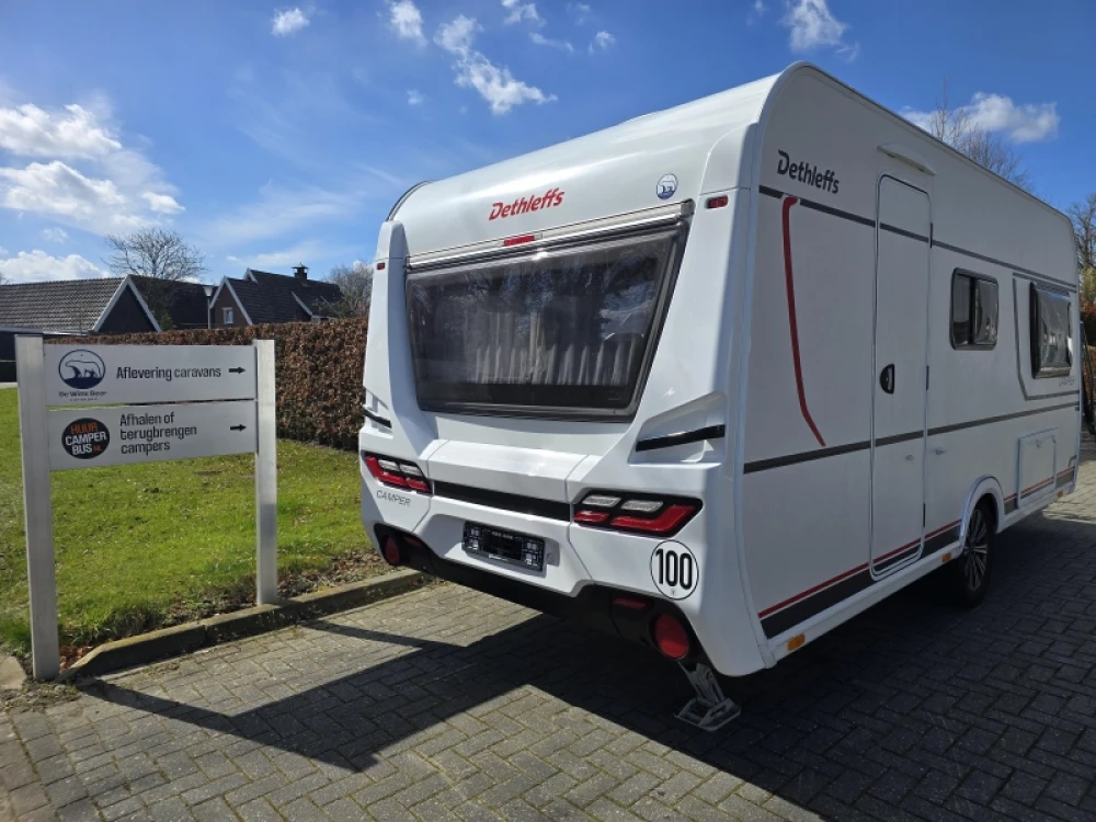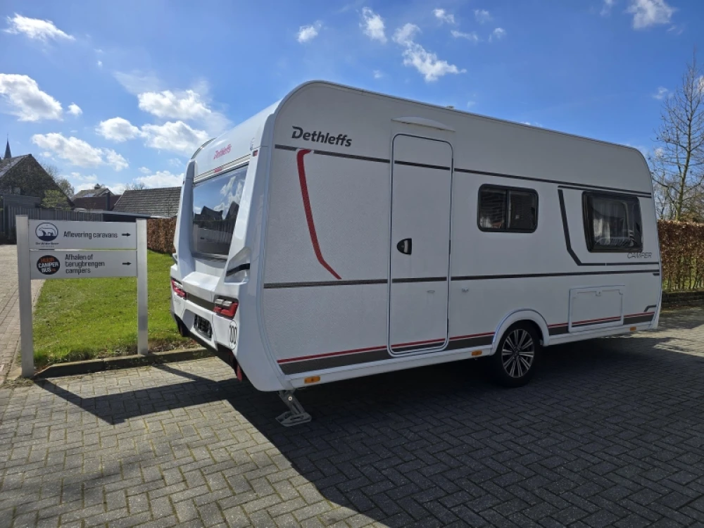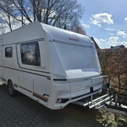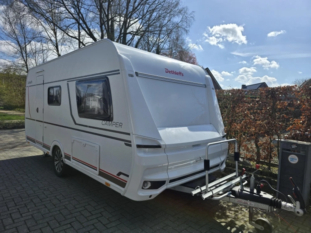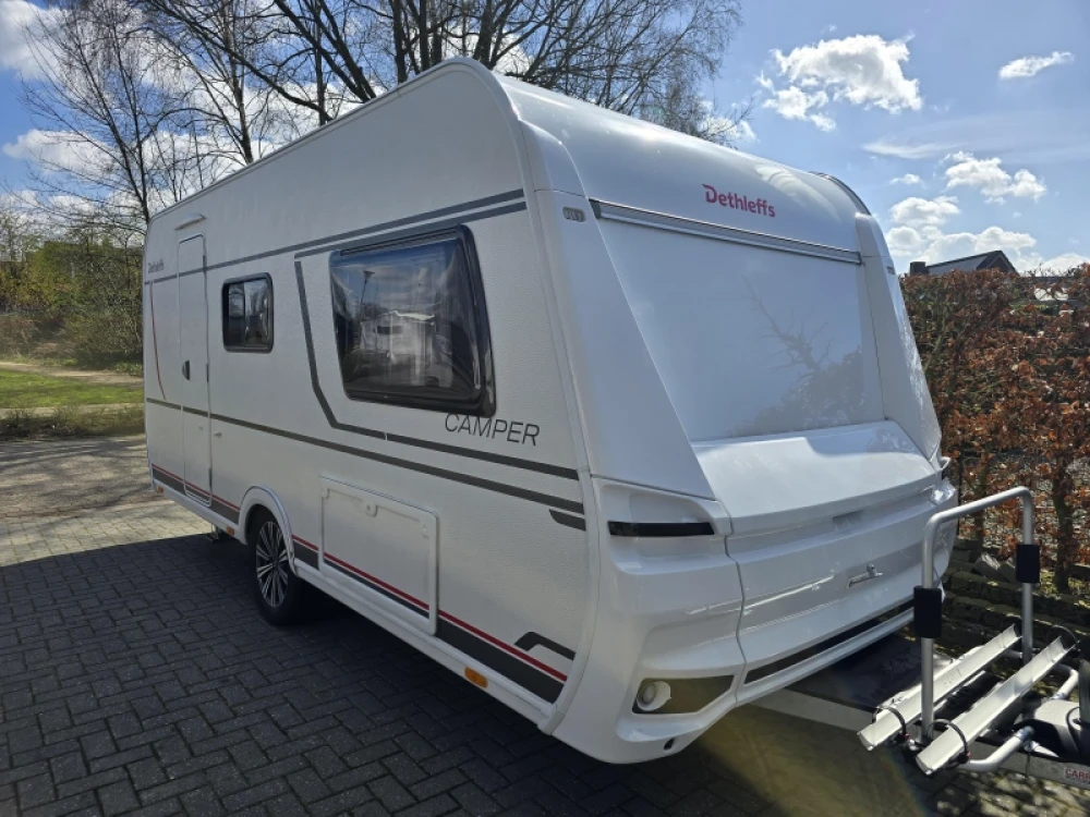 In deze comfortabel uitgevoerde caravan van het merk Dethleffs, beschikt u over 3 slaapplaatsen. Deze caravan is gebouwd in 2023. Door het gebruik van GFK heeft deze Dethleffs caravan een hagelbestendig dak. De caravan is tevens uitgerust met een handig fietsenrek, zodat u uw fietsen gemakkelijk kunt meenemen naar uw vakantiebestemming. Het laadvermogen bedraagt 480 kilo, zodat u al uw vakantiebagage makkelijk mee kunt nemen. Door het serviceluik zijn uw kampeerspullen ook van buitenaf makkelijk bereikbaar. Achterop de caravan ziet u de Tempo 100 sticker. Deze geeft aan dat u met deze caravan 100 kilometer per uur mag rijden op de Duitse Autobahn.