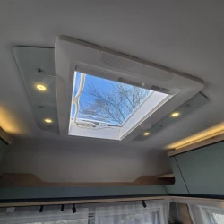 Door het grote dakluik beschikt u over een goede ventilatiemogelijkheid die ook meer daglicht in de caravan geeft.