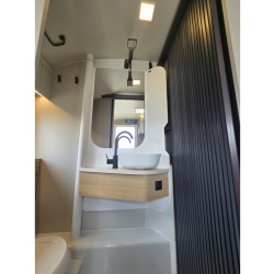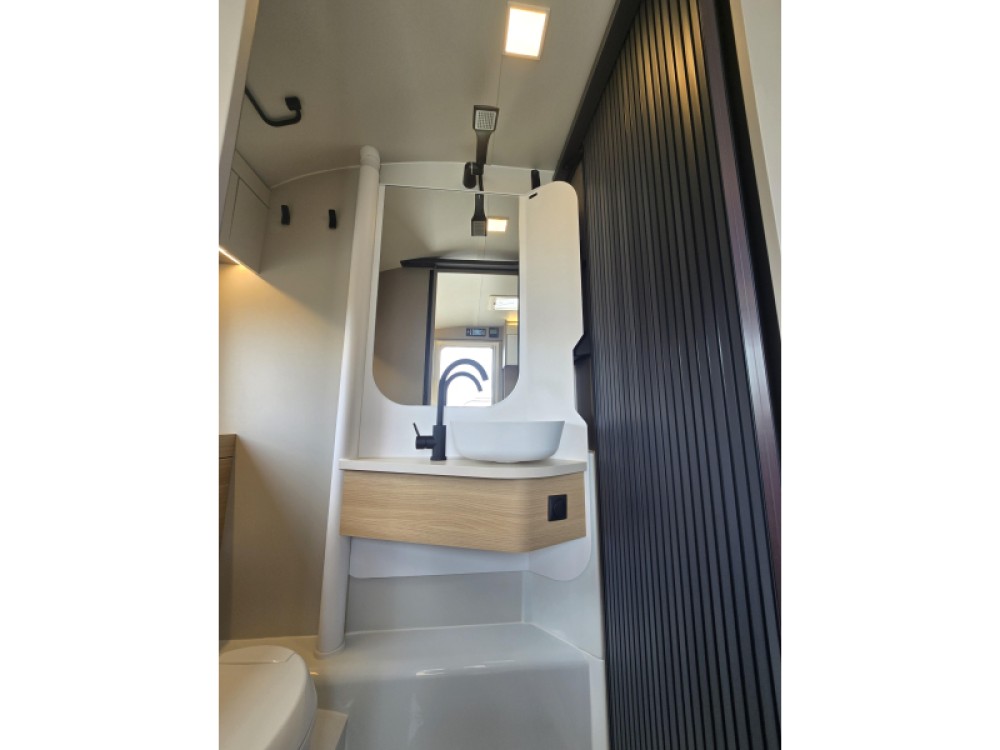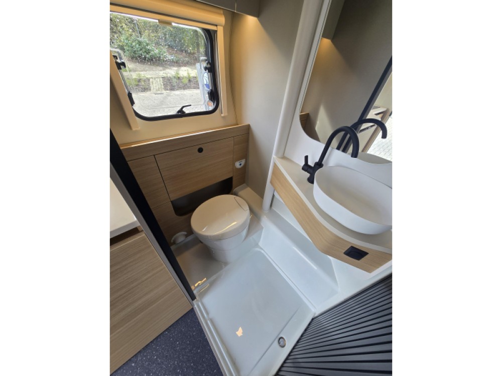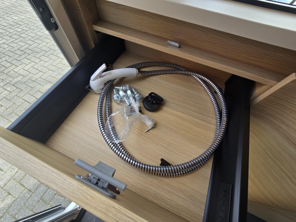 Het truma combi boiler en luchtcirculatiesysteem zorgt daarbij voor een goede verdeling van de verwarmde lucht voor warm water.