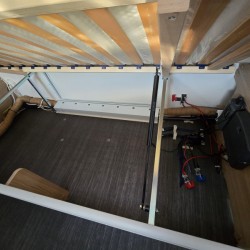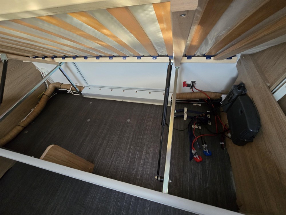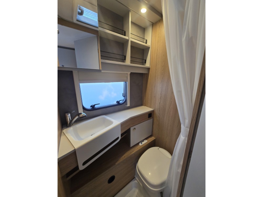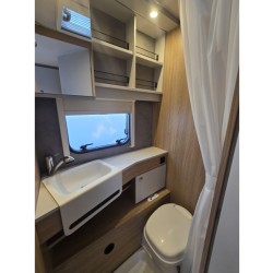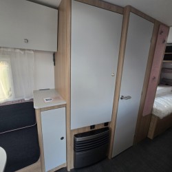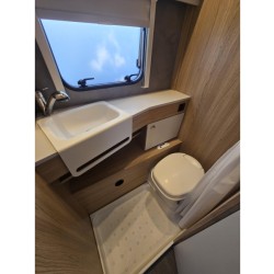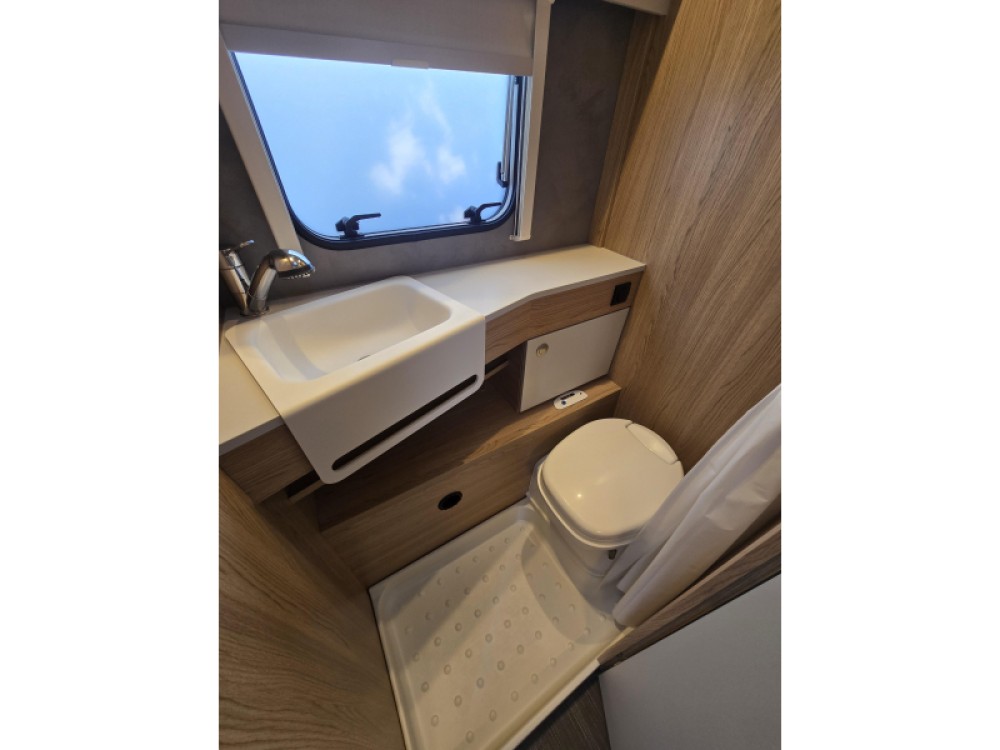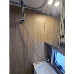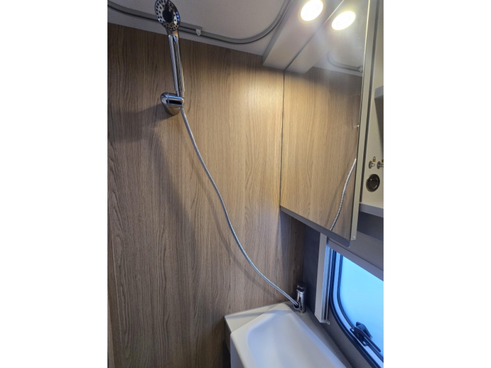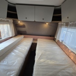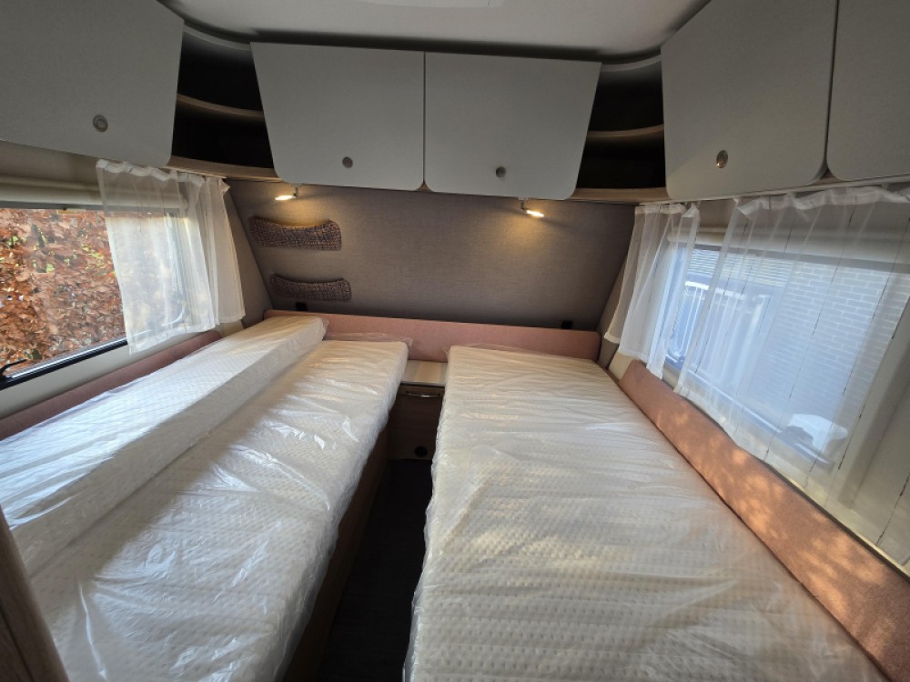 Slapen doet u op de 2 aparte bedden, die borg staan voor extra ruimte en een makkelijke instap. Dankzij de pocketveringsmatrassen en lattenbodems op de bedden kunt u genieten van een extra comfortabele ligging. U kunt zich heerlijk opfrissen bij de wastafel in de badkamer, waar tevens een cassettetoilet ingebouwd. Ook is de caravan uitgerust met een douchegelegenheid, zodat u aan boord kunt douchen.