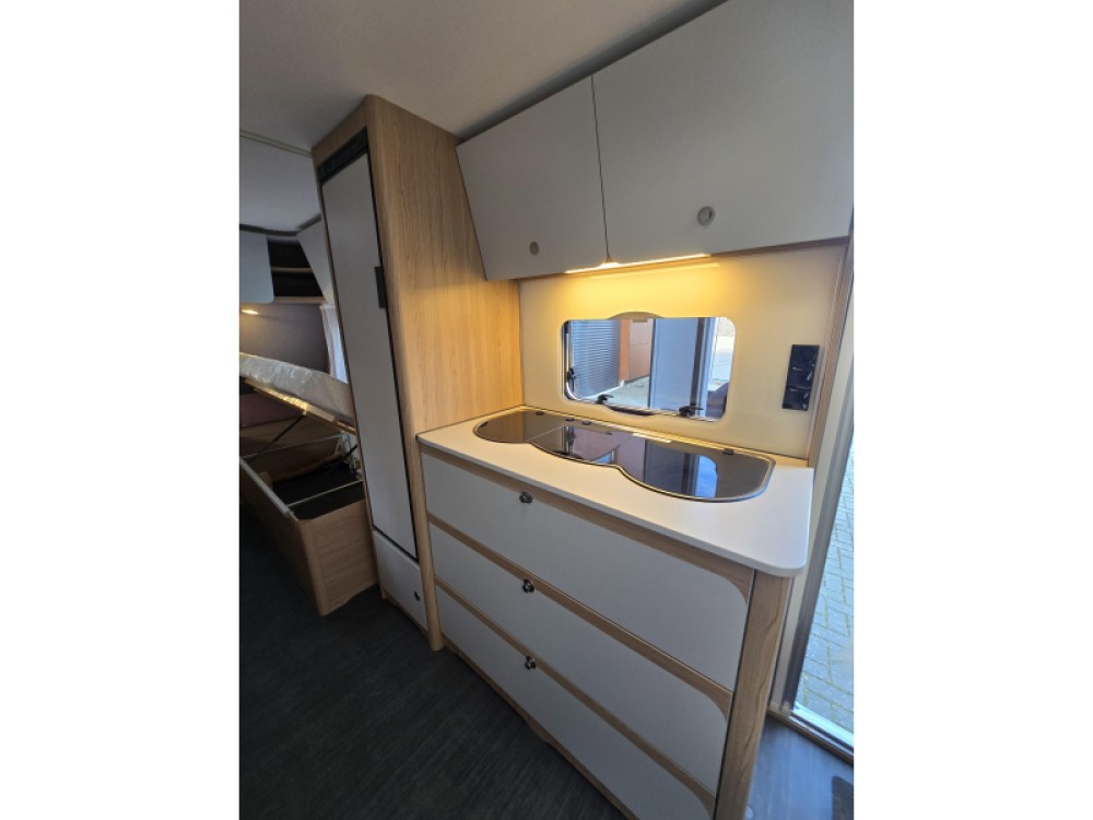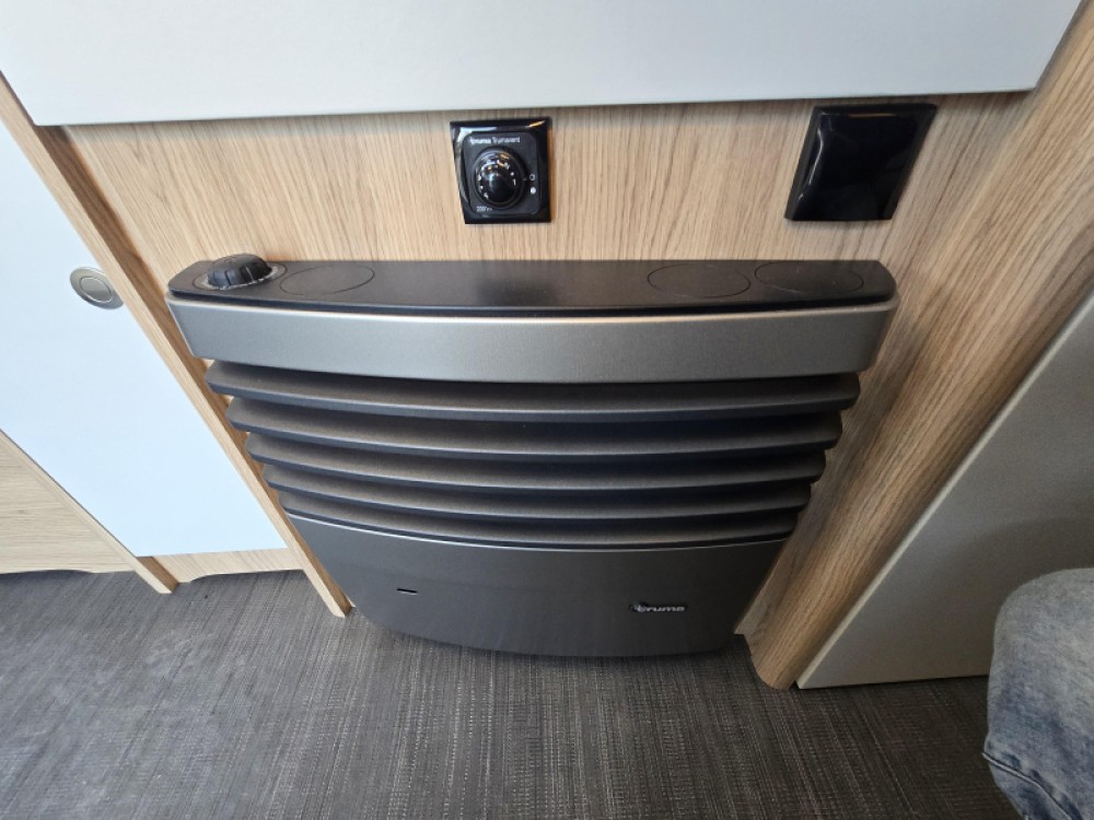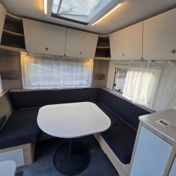 Het grote dakluik van de caravan zorgt voor extra veel lichtinval en een goede ventilatie. De verwarmde lucht wordt efficiënt verspreid via een ringverwarming.